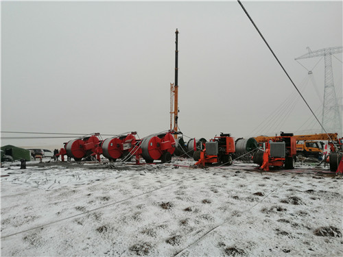 這時(shí),位于張場的3臺(tái)張力機(jī)同時(shí)發(fā)出陣陣轟鳴聲,6根鋼芯鋁絞線被緩緩展放出來。