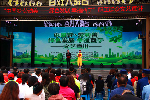 人民網(wǎng)西寧7月9日電 (陳明菊)7月9日,西寧市總工會、團市委、市婦聯(lián)、市文聯(lián)、市工商聯(lián)、市殘聯(lián)、市科協(xié)、市紅十字會在中心廣場聯(lián)合舉辦了“中國夢·勞動美—綠色發(fā)展 幸福西寧”職工群眾文藝宣講活動。600余名來自全市部分各級勞動模范和市公安局、市衛(wèi)生健康委、市教育局、市工信局的職工代表以及各區(qū)縣園區(qū)群團干部聆聽了宣講、觀看了演出。