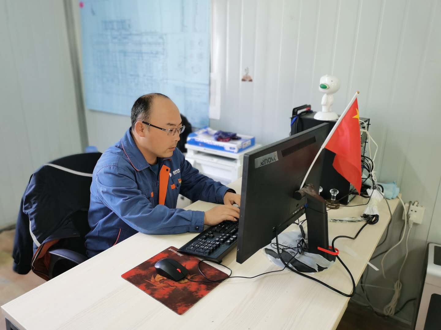 在海南750千伏變電站,張萬(wàn)祥在項(xiàng)目部辦公。楊凱 攝