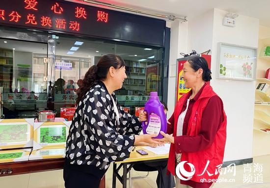 人民網(wǎng)西寧7月29日電(楊玥)“這次積分兌換,志愿者們都拿到了心儀的小禮品!75歲高齡的張玉梅奶奶高興地展示著手中的燒水壺說到。近日,西寧市城中區(qū)打造新時代文明實踐 “綠色陽光 愛心換購”驛站,首批在7個新時代文明實踐站布置成立,志愿者們可以憑借日常志愿服務得到的積分換取小禮品。