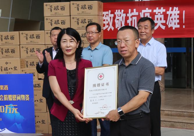 8月8日,青;ブ囡乒煞萦邢薰荆ㄒ韵潞喎Q:天佑德青稞酒)物資捐贈(zèng)儀式在寧夏回族自治區(qū)人民醫(yī)院舉行。