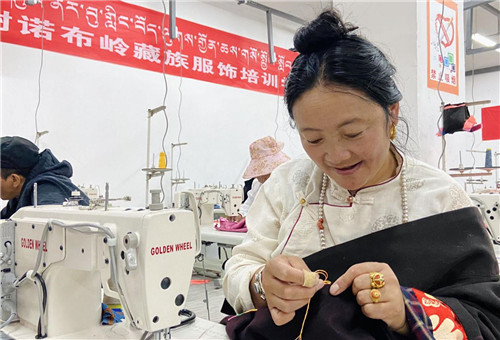“今年計劃培訓(xùn)900人,目前已經(jīng)培訓(xùn)了200多人,培訓(xùn)完畢后,做得好的就留在當(dāng)?shù)鼐蜆I(yè),每人每月2800元工資,其他的可以在家里做藏袍加工,一年加工費三到六萬不等!敝Z布嶺民族服飾有限公司創(chuàng)始人巴德江才說。
