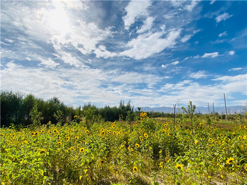 人民網(wǎng)格爾木8月26日電(蔣瑩)眼下,格爾木市的“秋老虎”格外猛烈,走進(jìn)郭勒木德鎮(zhèn)紅柳村仁達(dá)枸杞專業(yè)合作社,田地里向日葵迎著太陽(yáng)綻放笑顏,屋內(nèi)辛勤的村民包著餃子哼著小曲,一座座排列整齊的溫室大棚內(nèi),白菜、茄子應(yīng)有盡有,紅黑枸杞、枸杞蜂蜜、食用玫瑰、土雞蛋等幾十種特色農(nóng)產(chǎn)品陳列其中……
