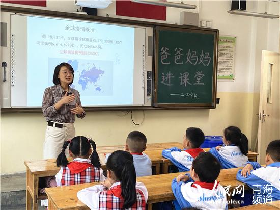 來(lái)自勝利路小學(xué)二年級(jí)2班徐婉迪的媽媽是青海大學(xué)成人教育學(xué)院的一名老師,今天她為同學(xué)們帶來(lái)的開學(xué)第一講是有關(guān)疫情防控的內(nèi)容!拔以O(shè)置了一個(gè)闖關(guān)游戲,讓孩子們?cè)诹私庑鹿诜窝椎闹R(shí)外還能回答問(wèn)題,積極互動(dòng),這樣孩子們能對(duì)這些內(nèi)容有更深刻的印象!毙焱竦蠇寢屨f(shuō)。