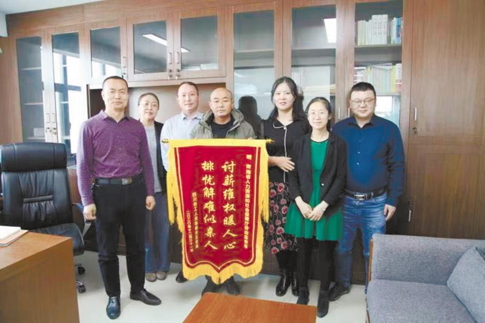 “討薪維權(quán)暖人心,排憂解難似親人!”1月5日,四川務(wù)工人員陳春吉委托朋友將這面錦旗送給青海省人力資源和社會保障廳勞動監(jiān)察局,對青海省勞動監(jiān)察局的工作人員幫助自己快速拿到拖欠了兩年的工資尾款表示感謝。
