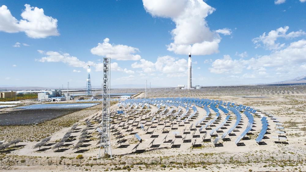 光熱發(fā)電造就戈壁靚麗的風(fēng)景線。
