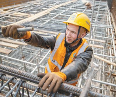 今年春節(jié)假期,中鐵建工集團(tuán)1000余名建設(shè)者堅(jiān)守北京豐臺(tái)站工作一線,沖刺豐臺(tái)站主體結(jié)構(gòu)封頂。圖為工人正在施工。