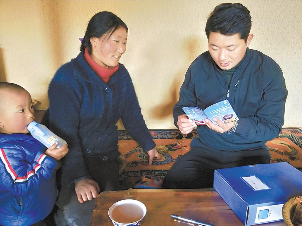 班瑪才昂仁增給牧民宣講政策。青海日?qǐng)?bào)記者 王湘琳 攝