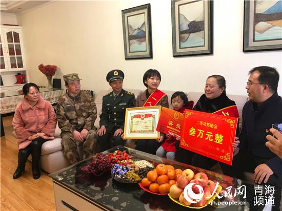人民網(wǎng)西寧2月24日電 (陳明菊)“鑼鼓敲起來,橫幅撐起來,送喜報(bào)的儀式感不能少!”2月24日,西寧市退役軍人事務(wù)局、西寧警備區(qū)等相關(guān)部門帶隊(duì)前往兩名榮立二等功的現(xiàn)役軍人家中,為現(xiàn)役軍人家庭送去立功喜報(bào)及30000元獎(jiǎng)勵(lì)金,并向他們致以感謝和祝福。