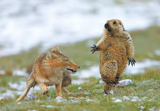 鮑永清攝影作品《生死對決》。祁連山國家公園青海省管理局供圖