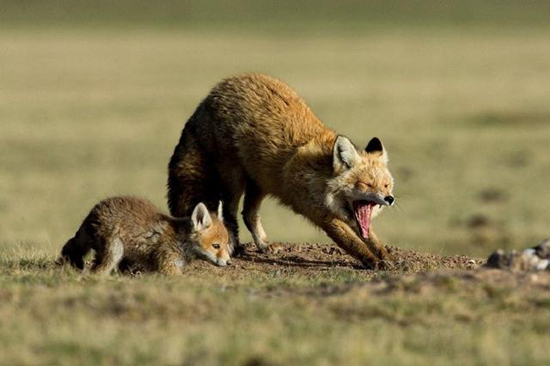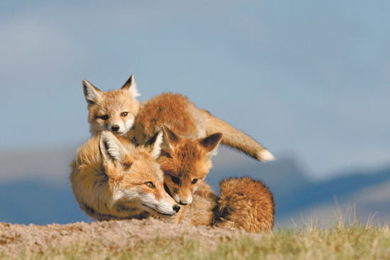 鮑永清攝影作品《赤狐母子》。祁連山國家公園青海省管理局供圖