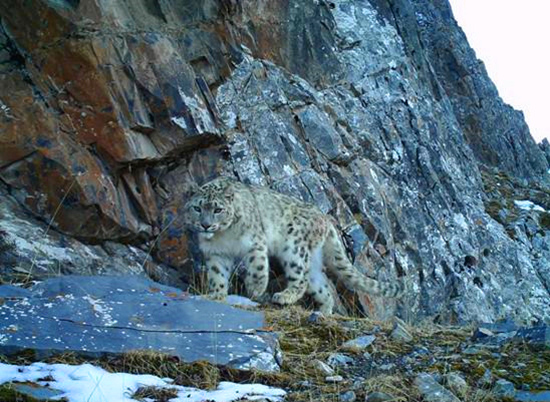 祁連山國家公園天峻片區(qū)監(jiān)測到雪豹影像。 青海省林業(yè)和草原局供圖