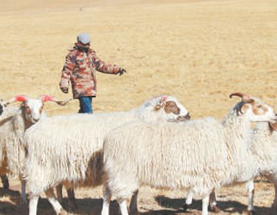 達(dá)玉村生態(tài)畜牧業(yè)專業(yè)合作社放牧員才科在放牧。本報(bào)記者 王 梅攝
