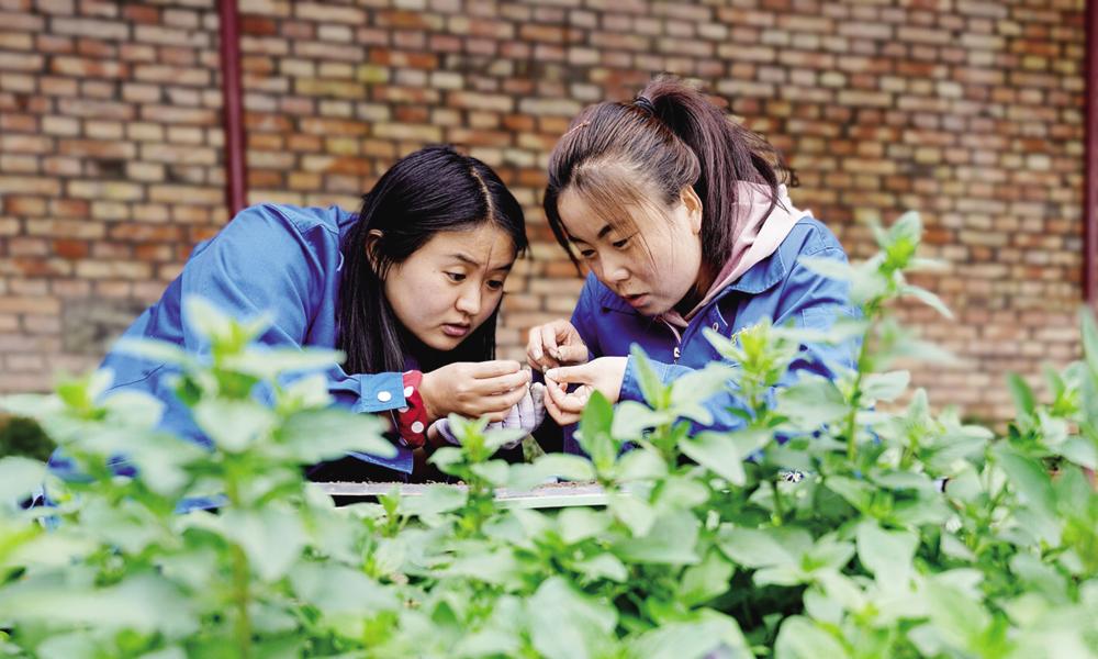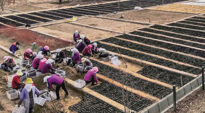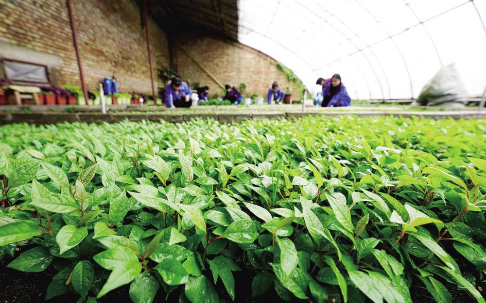 工作人員正在對種苗進(jìn)行養(yǎng)護(hù)。
