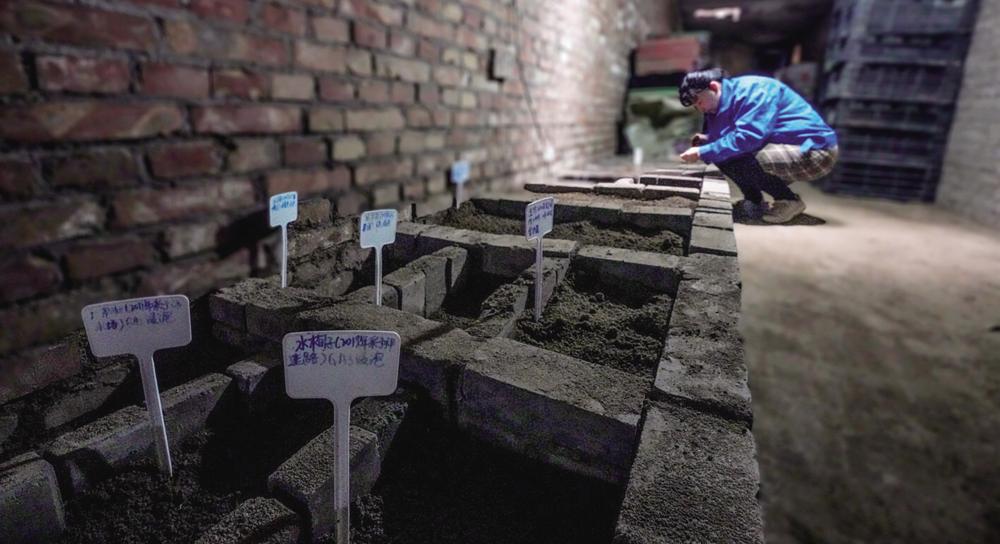 工作人員正在冷窖監(jiān)測植物種子發(fā)芽情況。