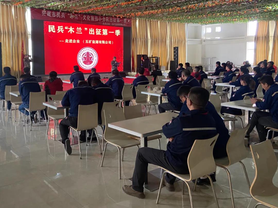 4月初,茫崖市民兵“木蘭”文化宣傳小分隊首次出征亮相便走進企業(yè)一線。在茫崖市人武部政委曹春華同志帶領(lǐng)下,11名“木蘭”隊員乘車前往距離茫崖市200多公里外的五礦鹽湖有限公司,用最通俗易懂的文化節(jié)目,深入宣講黨的歷史、黨的故事、全國“兩會”精神以及省、州、市“兩會”精神。