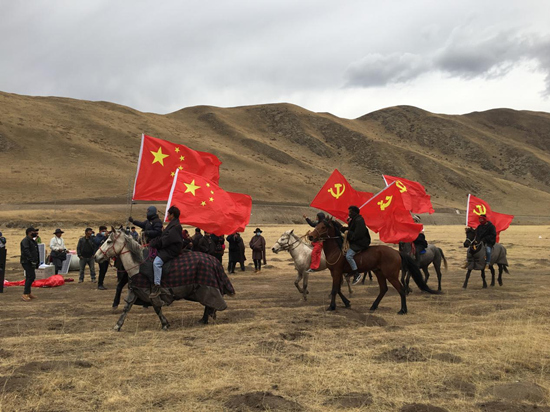 “馬背宣講隊”前往牧區(qū)宣講。青海省委黨史學習教育領導小組辦公室供圖