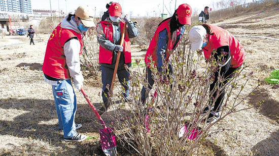 志愿者參加義務(wù)植樹。 青海日報記者 欒雨嘉 洪玉杰 郭靚攝