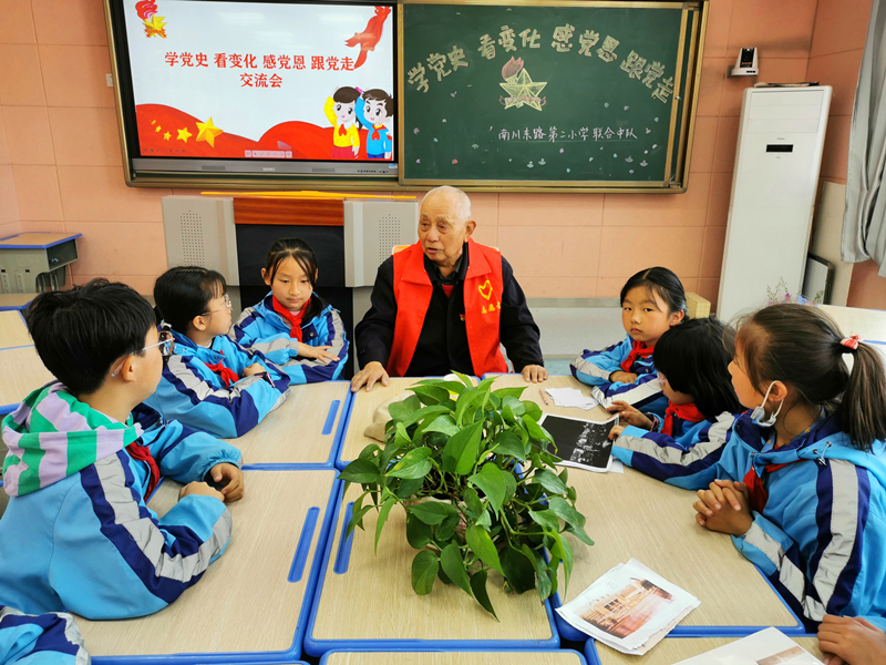 南川東路第二小學開展“學黨史 看變化 感黨恩 跟黨走”活動。人民網 楊啟紅攝