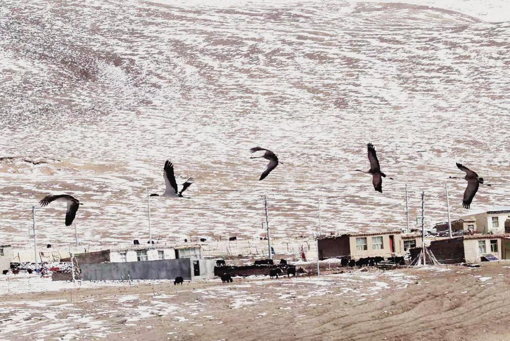 至秋季,隨著鳥(niǎo)類北方遷徙種群的抵達(dá),黑頸鶴的數(shù)量再次開(kāi)始增多,直到11月中下旬,黑頸鶴種群全部離開(kāi)嘉塘草原,遷往它們位于青藏高原南部的繁殖地。