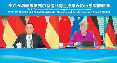 4月28日下午,國務(wù)院總理李克強在北京人民大會堂以視頻形式與德國總理默克爾共同主持第六輪中德政府磋商。
