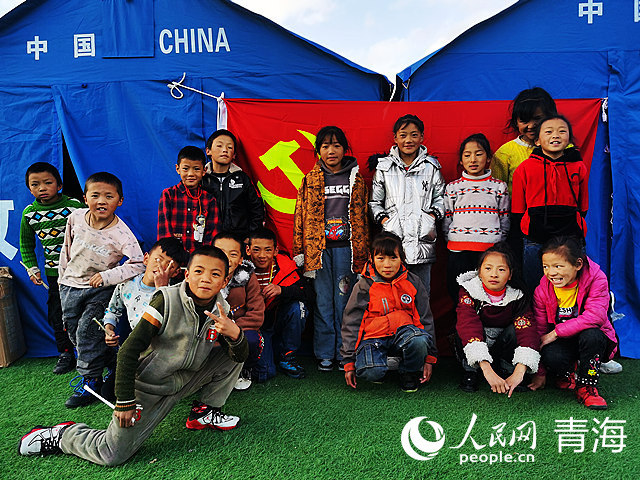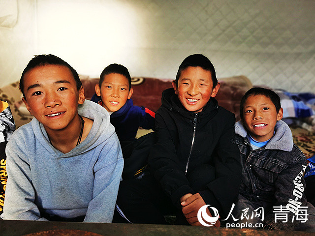 瑪多縣黃河鄉(xiāng)藏文寄宿學校安置點的學生們。人民網 蔣瑩攝