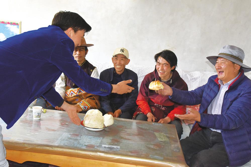 豆后保說:“服務隊把每月1日確定為‘德敦簇敦’黨團服務日,這天大家同牧民群眾坐在一起梳理黨務村務家務,調處化解矛盾糾紛,宣傳學習黨的方針政策,互幫互助。對于能解決的問題,服務隊立即解決,解決不了的則向村‘兩委’匯報,實現(xiàn)了上情下達、下情上傳。”