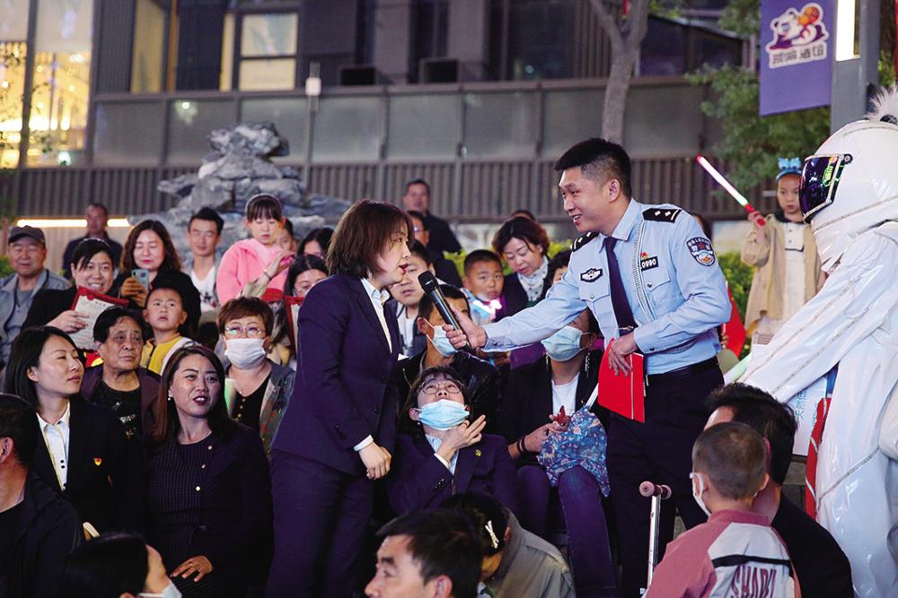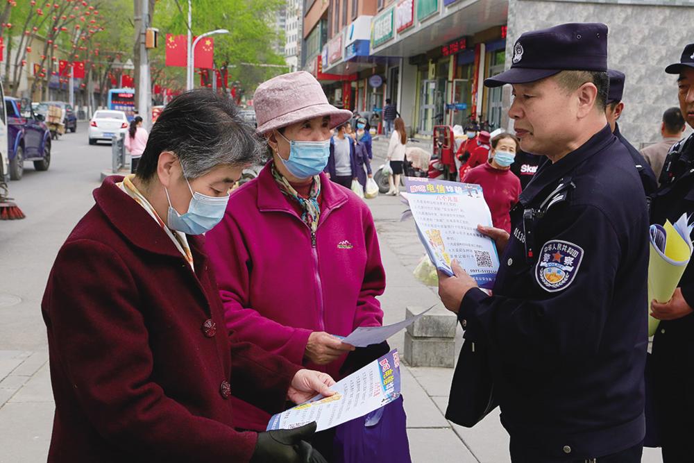 民警與群眾開展防范電信網(wǎng)絡(luò)詐騙問答互動(dòng)。