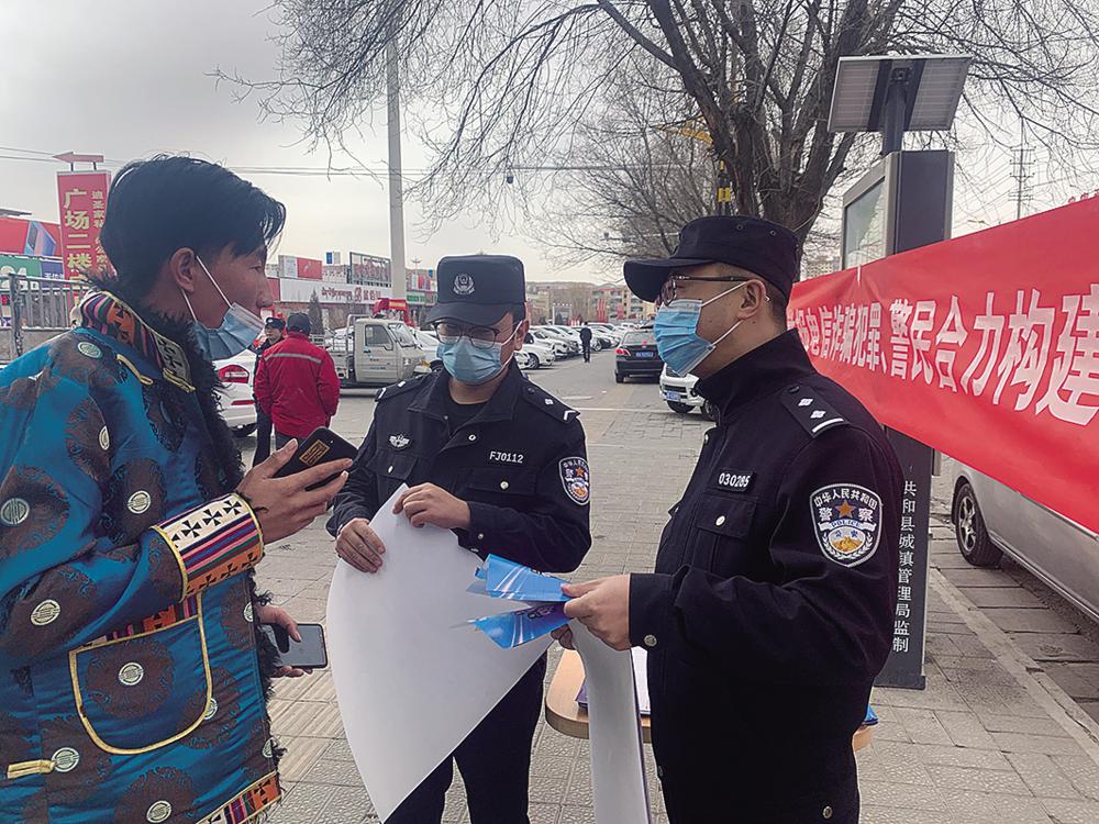 青海省公安廳反詐中心供圖民警向牧區(qū)群眾宣傳防范電信網(wǎng)絡(luò)詐騙知識。