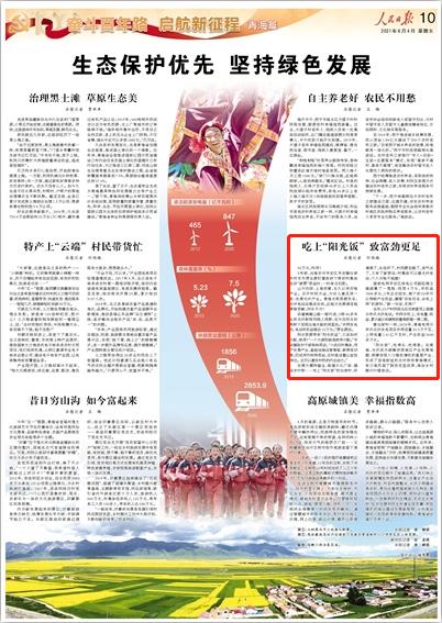 “陽光飯”,吃得長、吃得香。在青海,光伏成為破解貧困地區(qū)產(chǎn)業(yè)發(fā)展難題、保障貧困人口穩(wěn)定增收的重要產(chǎn)業(yè),形成了因地制宜的光伏扶貧青海模式,有力地鞏固了脫貧攻堅成果,推動鄉(xiāng)村振興行穩(wěn)致遠!度嗣袢請蟆罚 2021年06月04日 第 10版)