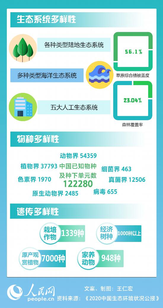我國是世界上生物多樣性最豐富的國家之一,生態(tài)系統(tǒng)類型多樣,已記錄陸生脊椎動物2900多種,占全球種類總數(shù)的10%以上,有高等植物3.6萬余種,居全球第三。