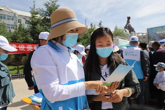 志愿者向群眾宣傳環(huán)保知識。海西州委宣傳部供圖