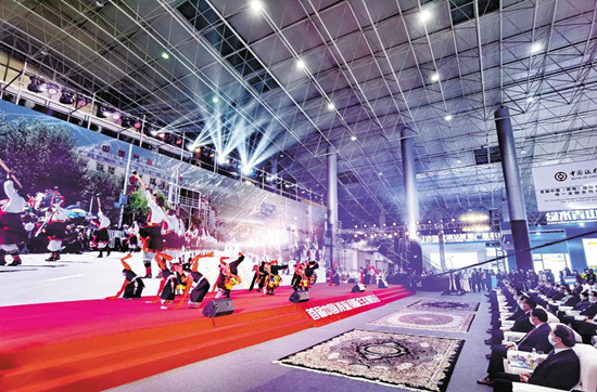 舞臺背景大屏上,湛藍的天空下江河奔流,美麗的草原上牛羊成群,遠處的雪山巍峨綿延……一幅幅色彩鮮明、美麗和諧的生態(tài)畫面,吸引著每一個人的目光。歡快的樂曲,動人的舞姿,多彩的展示,精彩的致辭……開幕儀式的每一個環(huán)節(jié)緊密銜接、環(huán)環(huán)相扣,匯聚成一片歡樂的海洋,一次次點燃在場嘉賓和觀眾的熱情,現(xiàn)場不斷爆發(fā)出陣陣掌聲。