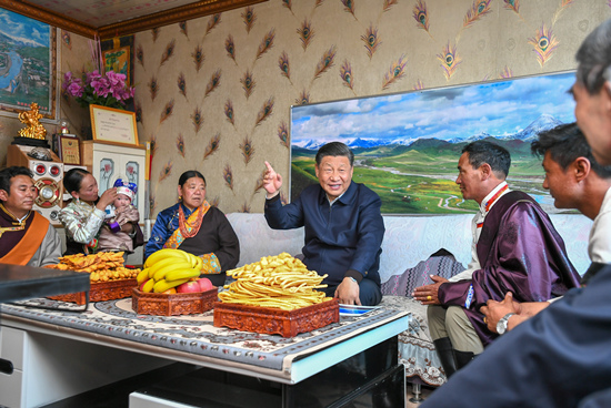 8日下午,習近平總書記來到海北藏族自治州剛察縣沙柳河鎮(zhèn)果洛藏貢麻村,走進牧民索南才讓家中,看望慰問藏族群眾。索南才讓說,牧民生活好,全靠黨的政策好,衷心感謝黨、衷心感謝總書記。習近平指出,我們黨成立一百年了,為什么老百姓衷心擁護中國共產黨?因為我們黨始終全心全意為人民服務、為各民族謀幸福。我們一百年來取得的成績,贏得了民心,在建設社會主義現(xiàn)代化國家新征程上,我們要走得更好。