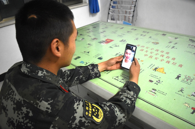 武警戰(zhàn)士給遠(yuǎn)方的父母送上節(jié)日祝福。 李旭東攝
