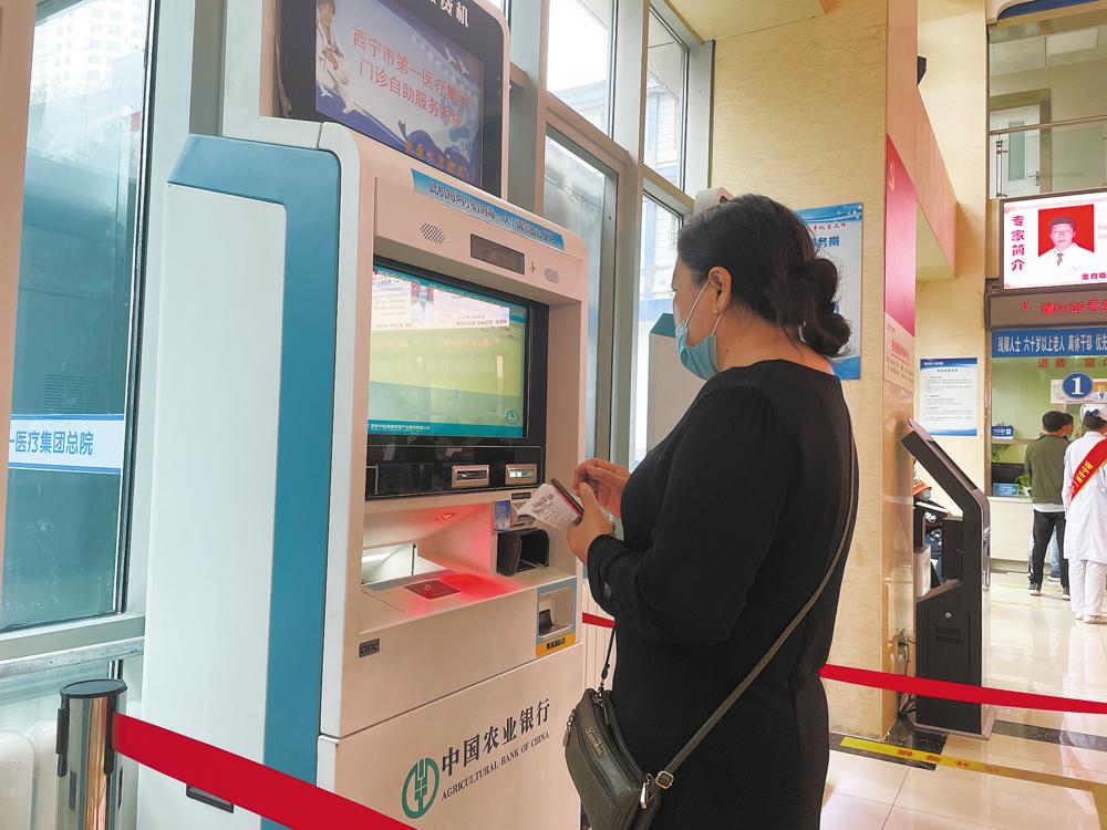 市民在自助服務(wù)一體機(jī)上掛號繳費(fèi)。青海日報記者 陳曦攝