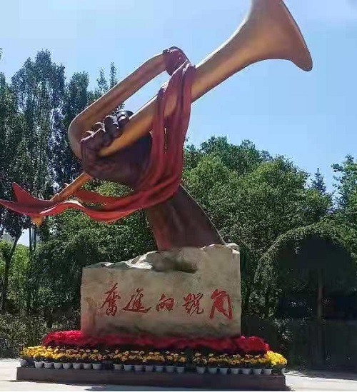 貫穿紅色理念。此雕塑由“奮進(jìn)的號(hào)角”和“紅星照耀中國(guó)”兩部分組成,針對(duì)南川東路這一特定環(huán)境創(chuàng)作而成,力爭(zhēng)用雕塑特有的藝術(shù)語(yǔ)言表達(dá)形象,依托西路軍紀(jì)念館和紅色主題公園,達(dá)到風(fēng)格的整體統(tǒng)一 。在設(shè)計(jì)過(guò)程中,以南川東路沿線綠地環(huán)境及文化特點(diǎn)為重點(diǎn),使雕塑的功能、位置、方向和諧統(tǒng)一,實(shí)現(xiàn)南川地區(qū)紅色文化的延伸。