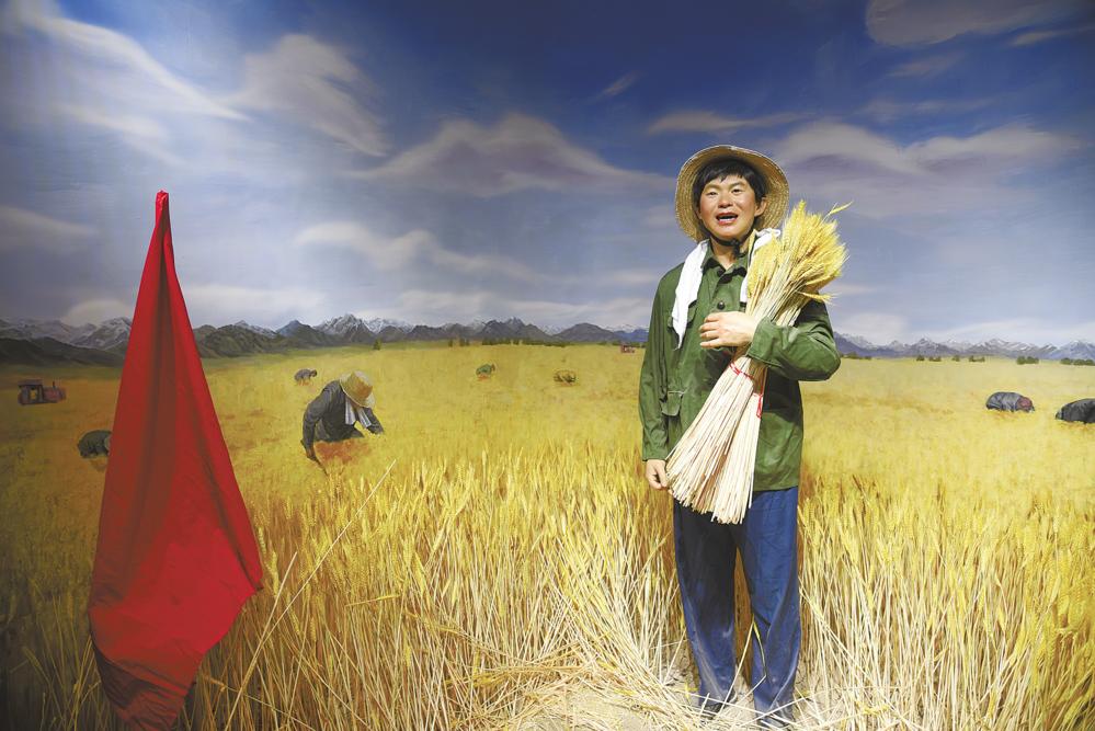 移步到展區(qū),每一個(gè)栩栩如生的人物塑像和模擬場(chǎng)景,還原了那個(gè)年代柴達(dá)木農(nóng)墾人的生產(chǎn)生活場(chǎng)景——藍(lán)天白云的帷幕下,麥田已泛黃,田埂上豎起的紅旗隨風(fēng)飄揚(yáng),豐收的農(nóng)墾人懷抱麥捆,眺望遠(yuǎn)方,由衷的快樂(lè)寫在臉上;小小的火爐散發(fā)出一股股暖流,一旁的矮凳上,農(nóng)墾人手捧千里家信,讀了又讀,神情里難掩對(duì)遠(yuǎn)方家人的思念……