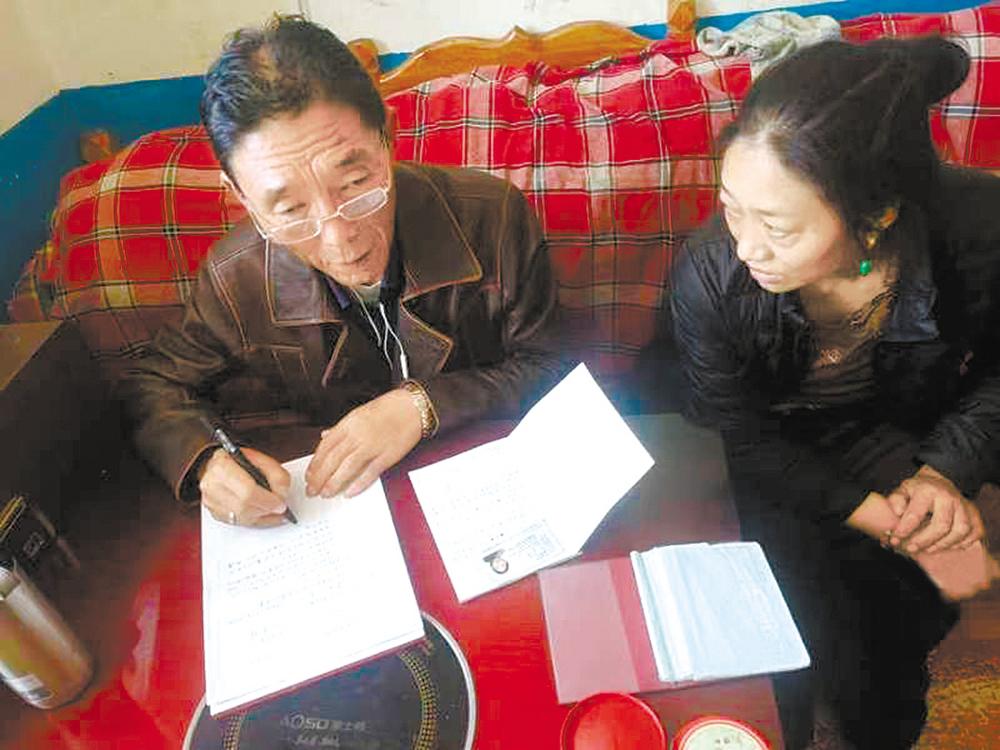 弋肖鋒走后,每當想起他,妻子普布卓瑪就會翻出他下鄉(xiāng)時用過的舊皮包。丈夫一邊工作、一邊將藥片胡亂塞進嘴里的情景恍若在眼前!敖M織交代的任務完不成怎么辦?”這是弋肖鋒對妻子常說的一句話。每當回憶起這些事,普布卓瑪?shù)哪樕显缫褱I流滿面。