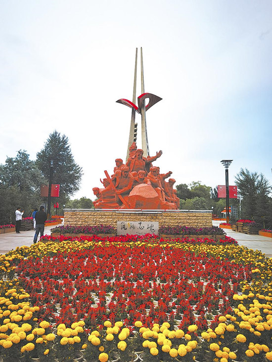 “筑路忠魂”雕塑和“天路紀(jì)念塔”。青海日?qǐng)?bào)記者 張洪旭 公保安加 攝