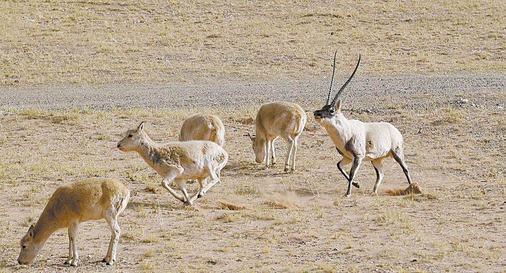 自由追逐的藏羚羊。 青海日報(bào)記者 黃靈燕攝