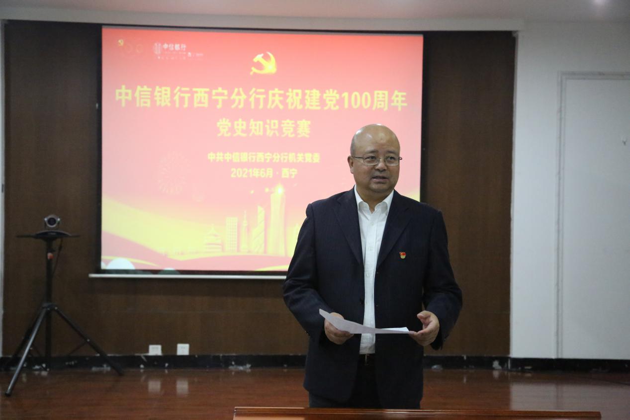 為慶祝中國共產(chǎn)黨成立100周年,進(jìn)一步推進(jìn)黨史學(xué)習(xí)教育走深走實(shí),引導(dǎo)廣大黨員學(xué)習(xí)黨史,營造更加濃厚的學(xué)習(xí)教育氛圍,6月24日,中信銀行西寧分行組織開展“學(xué)黨史 感黨恩 跟黨走”慶祝建黨100周年黨史知識(shí)競賽活動(dòng),全行16個(gè)黨支部共計(jì)48名黨員參加本次競賽。