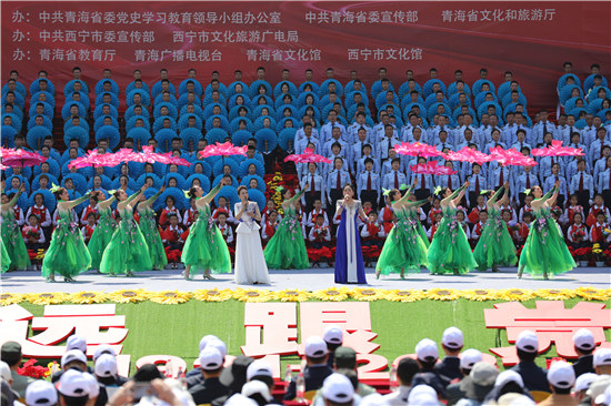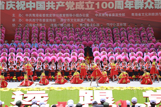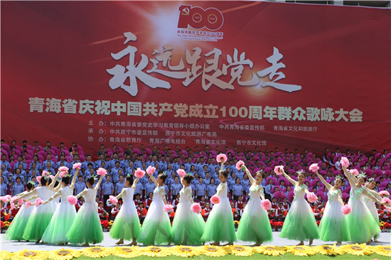 人民網(wǎng)西寧6月27日電 (甘海瓊、實習生朱煜祥)6月27日,青海省慶祝中國共產(chǎn)黨成立100周年“永遠跟黨走”大型群眾歌詠大會在新寧廣場舉行,來自全省各行各業(yè)的900名干部群眾組成合唱方陣,用歌聲為慶祝中國共產(chǎn)黨成立100周年獻禮。