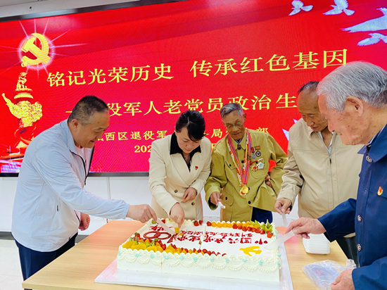 城西區(qū)退役軍人事務(wù)局和基層組織“兵支書”等16名退役軍人老黨員同過“政治生日”。西寧市退役軍人事務(wù)局供圖