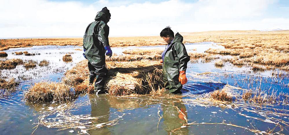 “這兩年,青海湖的水位有所上漲,淹沒(méi)了黑頸鶴建巢的那片濕地。我們就自己掏錢(qián)買(mǎi)了草和其他材料,游過(guò)去幫它們搭窩!4月的湖水冰冷刺骨,等到尖木措幾個(gè)人完成工作時(shí),早已凍得瑟瑟發(fā)抖。