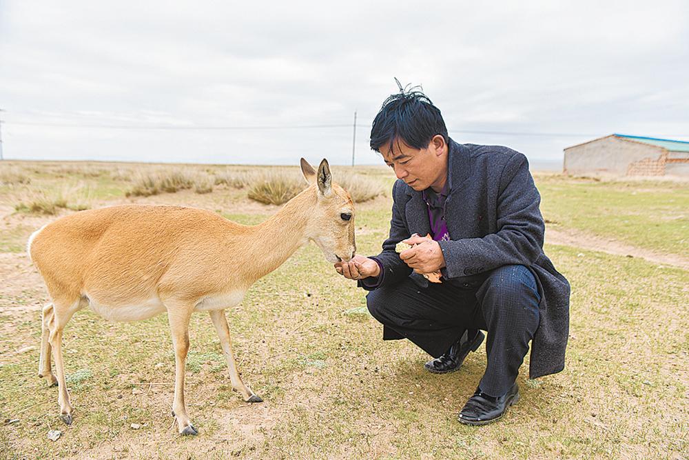“巡護(hù)過(guò)程中發(fā)現(xiàn)受傷嚴(yán)重的普氏原羚,我們會(huì)第一時(shí)間跟青海湖的救護(hù)中心聯(lián)系,送去那里救治;像瘦瘦這樣落單的小普氏原羚或者受輕傷的普氏原羚,我就會(huì)直接救助它們,當(dāng)?shù)氐年笈D趟鼈兒攘瞬皇娣,就買(mǎi)袋裝牛奶給它喝。等恢復(fù)健康后再讓它們回歸自然!奔饽敬敫嬖V記者,除了普氏原羚,這些年他還救助過(guò)大天鵝、黑頸鶴。
