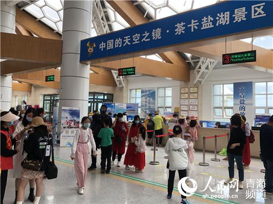 茶卡游客服務(wù)中心內(nèi)游人如織。人民網(wǎng) 劉沛然攝