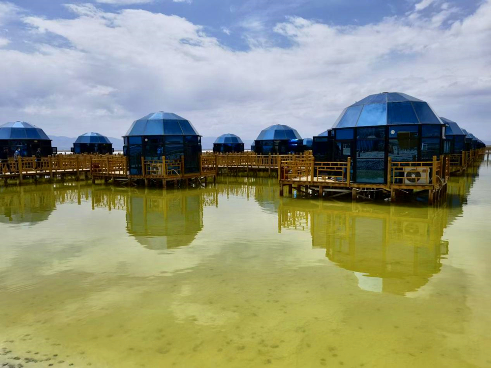 夜色來臨,星光燦爛,鹽湖如鏡,微風(fēng)拂過,倒影如畫——景區(qū)特色星空屋。人民日報社青海分社 王梅攝