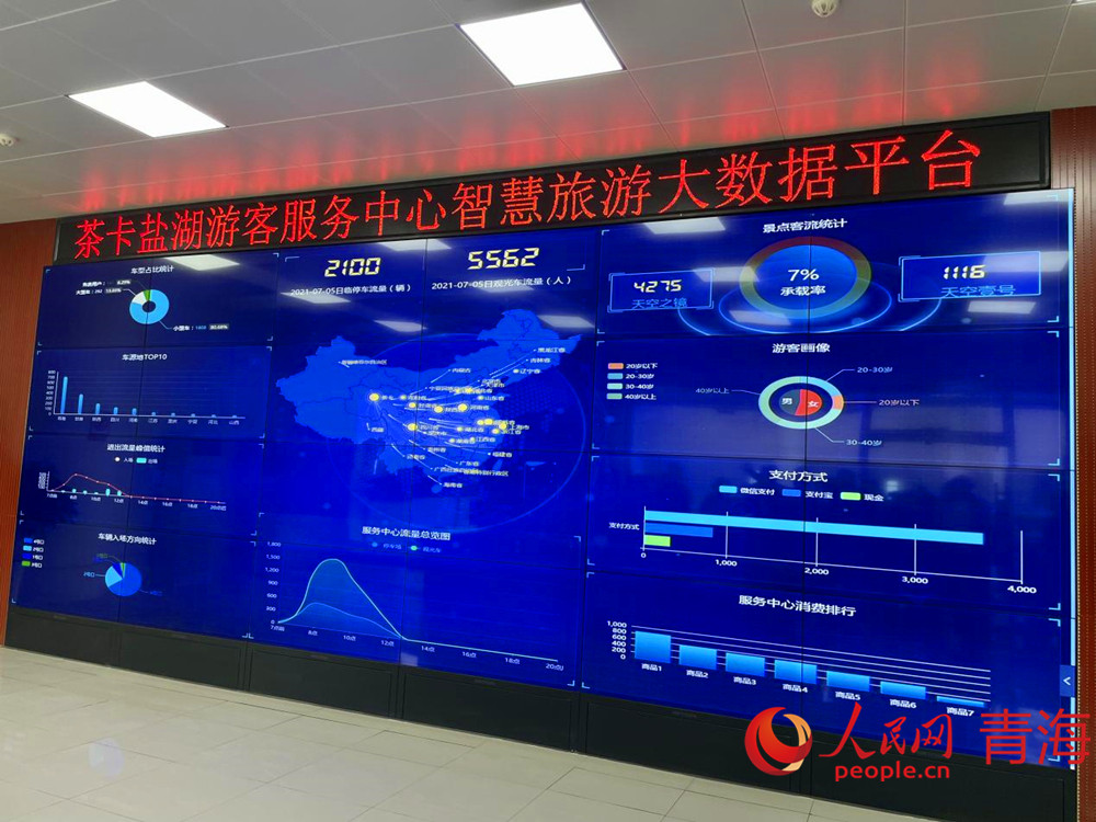 茶卡鹽湖游客服務(wù)中心大數(shù)據(jù)平臺。人民網(wǎng) 陳明菊攝