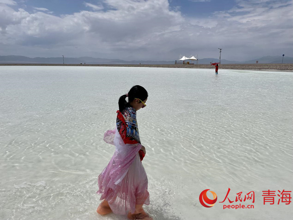 漫步在景區(qū)鹽湖里的游客。人民網(wǎng) 陳明菊攝